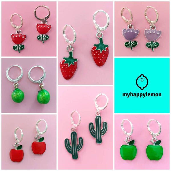 Een fris groen appeltje in je oor! De dag is gelijk goed begonnen! Verkrijgbaar met een nikkelvrij verzilverd oorbelletje eraan!
