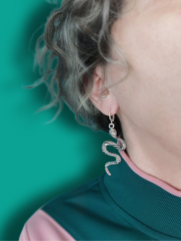 Verzilverd slangetje van 5 cm lang met een nikkelvrij verzilverde oorbel.